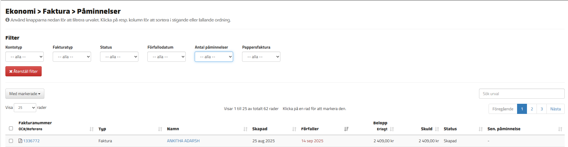 I bifogad bild har jag tagit fram alla obetalda/fakturor