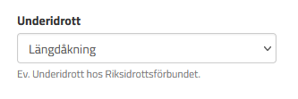 För er vars verksamhet har underidrotter (t.ex. Längdskidor under Skidor eller Trampolin under Gymnastik) så kan ni ange underidrott på varje verksamhetstyp.