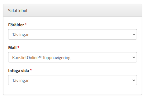 Ge din sida ett namn och i rutan Sidattribut, välj Tävlingar i rutan Infoga sida.