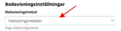 - Innan filen kan tas ut behöver ni ha korrekta inställningar. Börja med att ställa in faktureringsmetoden genom att gå in på System > Inställningar, välj flik Ekonomi och välj faktureringsmetoden.