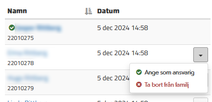 Möjlighet att ändra ansvarig direkt från medlemskontot, klicka på pilen för den person du vill ändra och välj "Ange som ansvarig"